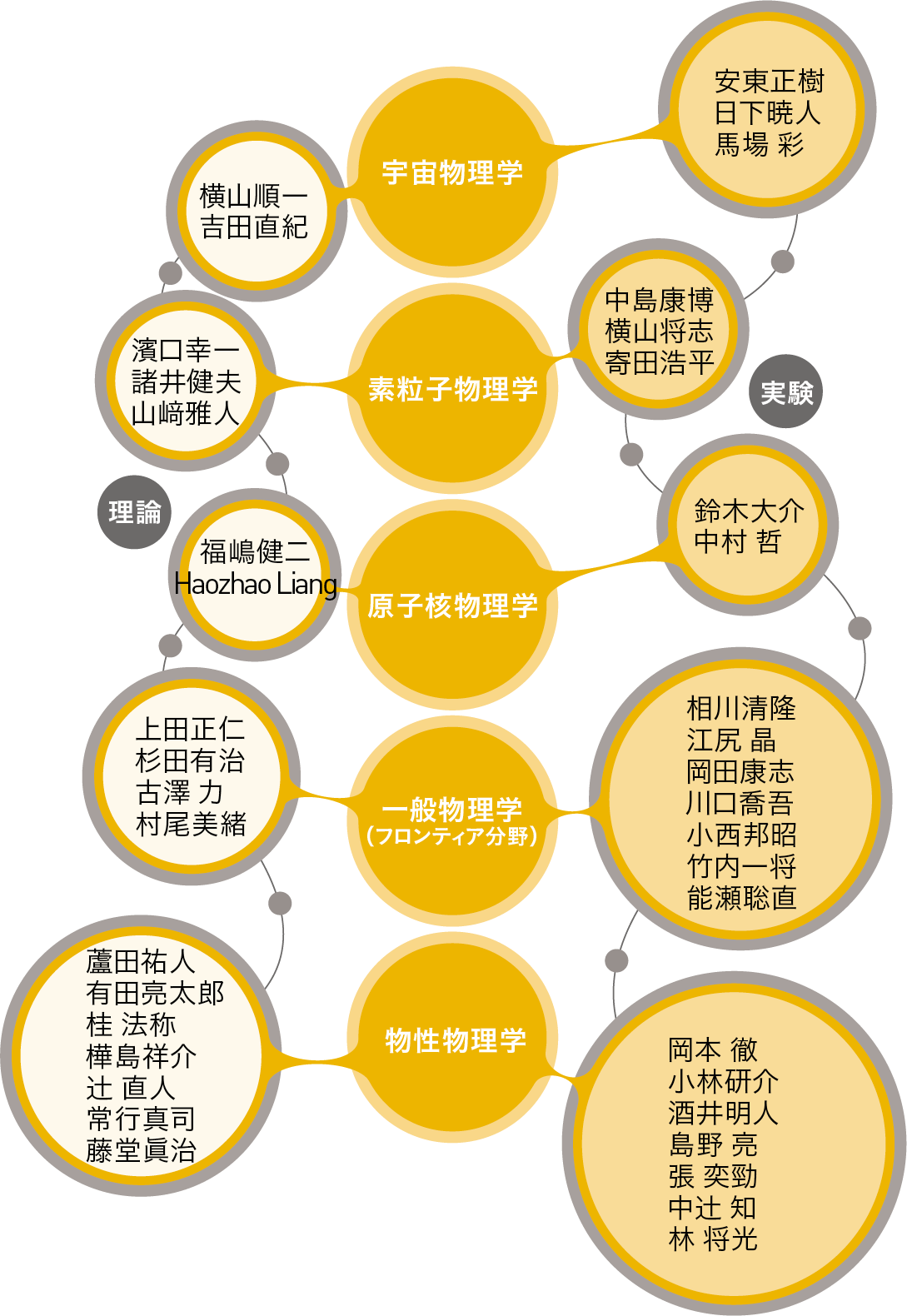 私たち、物理学科・物理学専攻は、素粒子、原子核、宇宙、物性、光、プラズマ、生物物理、量子情報・量子コンピューティング、AIなど、物理学のほぼ全分野をカバーする世界有数の研究拠点でもあります。